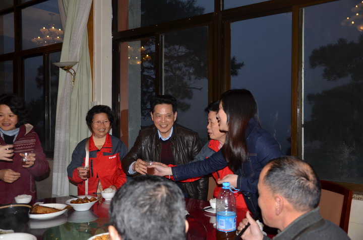 每次的晚餐,都是外出游玩里的華彩段,也是集團企業(yè)文化的一部分。剛坐下座位,歡笑的氛圍已經(jīng)彌漫開(kāi)來(lái)了。大家輪番上陣敬老板、敬劉總,還穿梭于各桌之間互敬。各種敬酒的理由層出不窮,團隊精神,組團出擊,妙語(yǔ)連連,極為盡興。